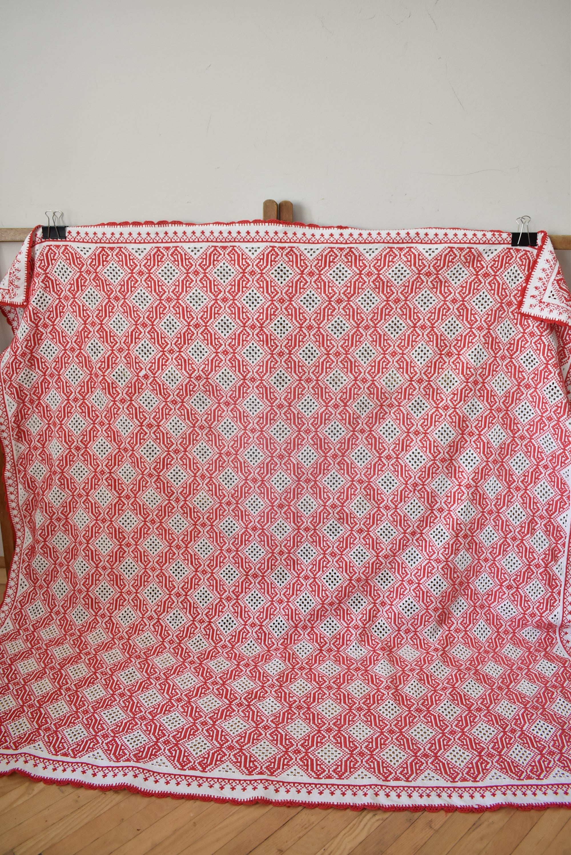 Wonderful and unusual vintage embroidered/ cut work cover from Transylvania