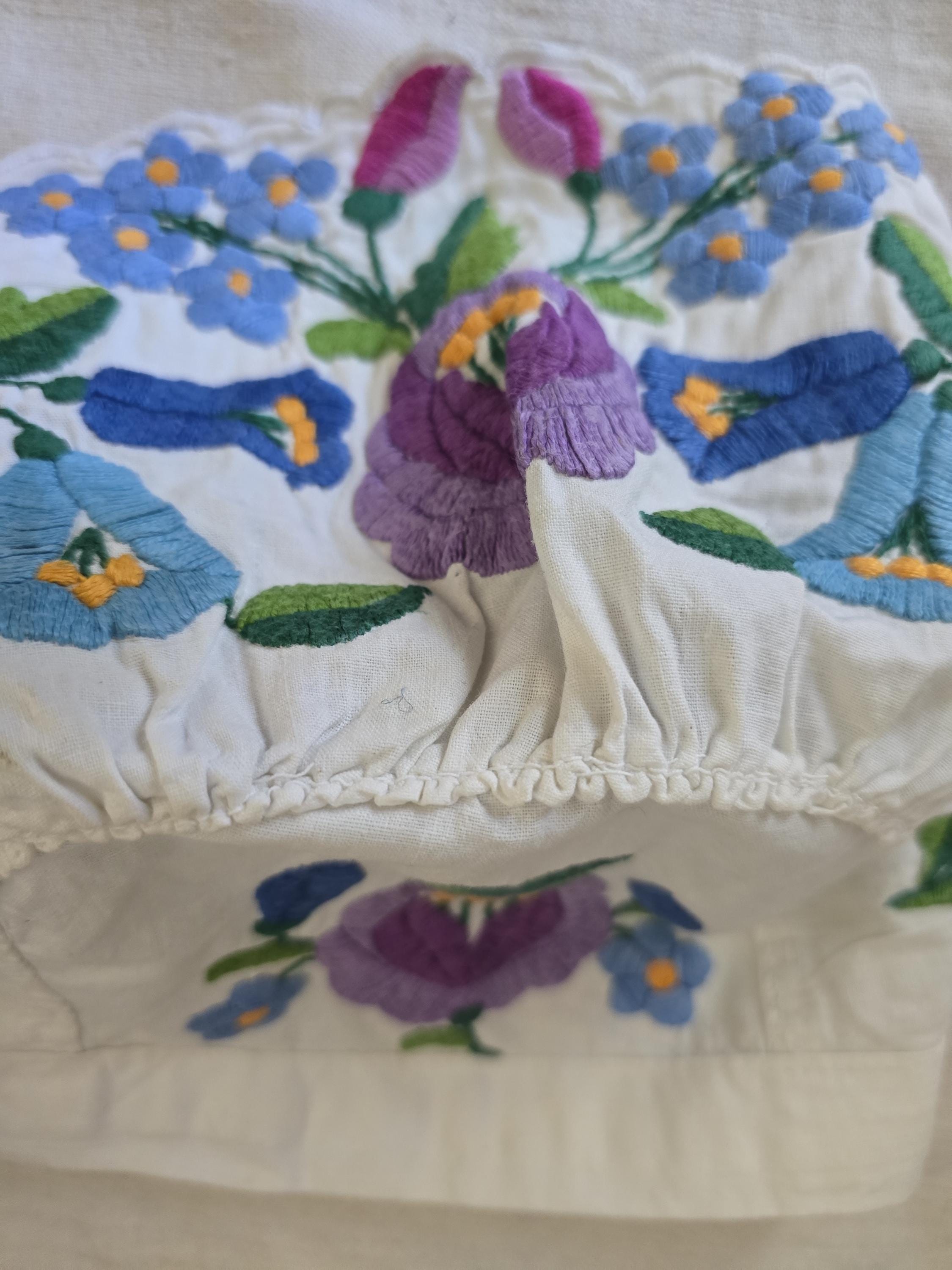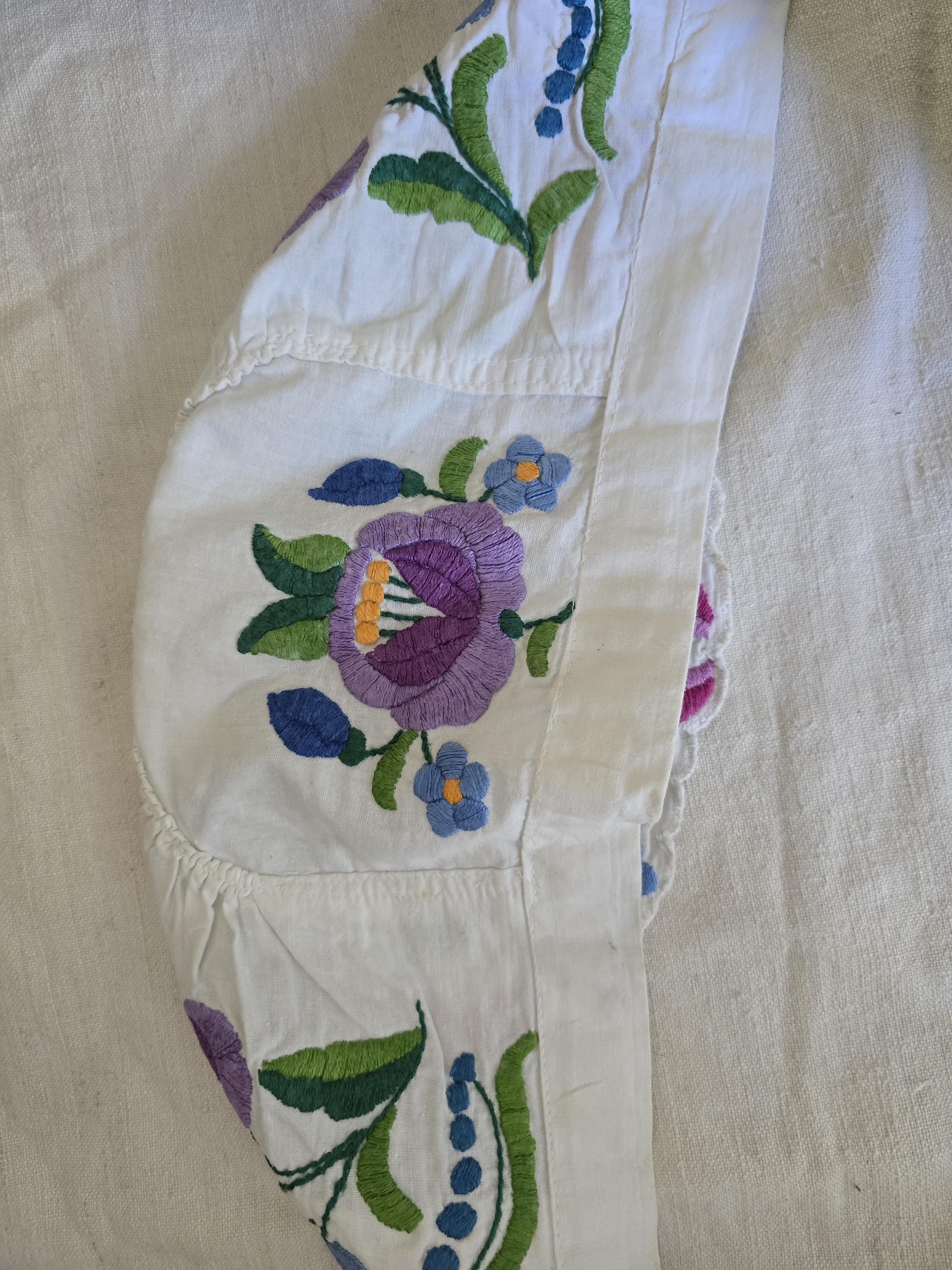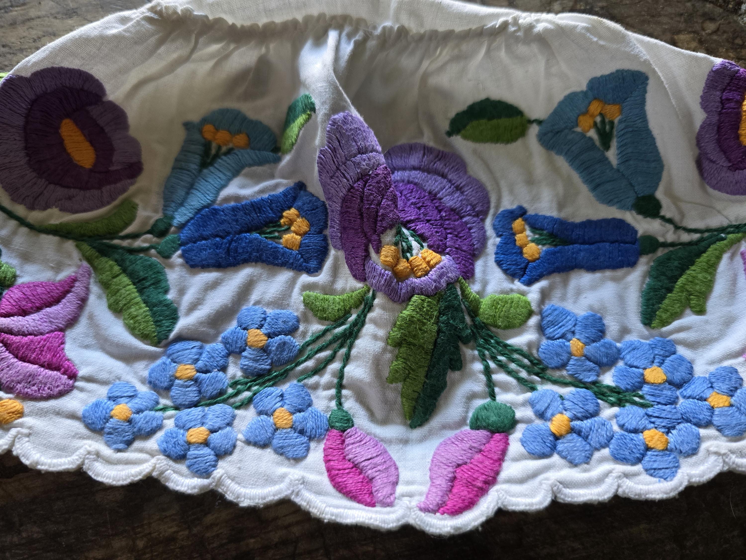 A reallly pretty embroidered Hungarian (Kalocsa)bonnet. Adult sizeIn good condition. approx 82 cm circumferenceFollow me on instsgram for updates on tours, textiles and travel @folktextilea_parna @parnaramarama