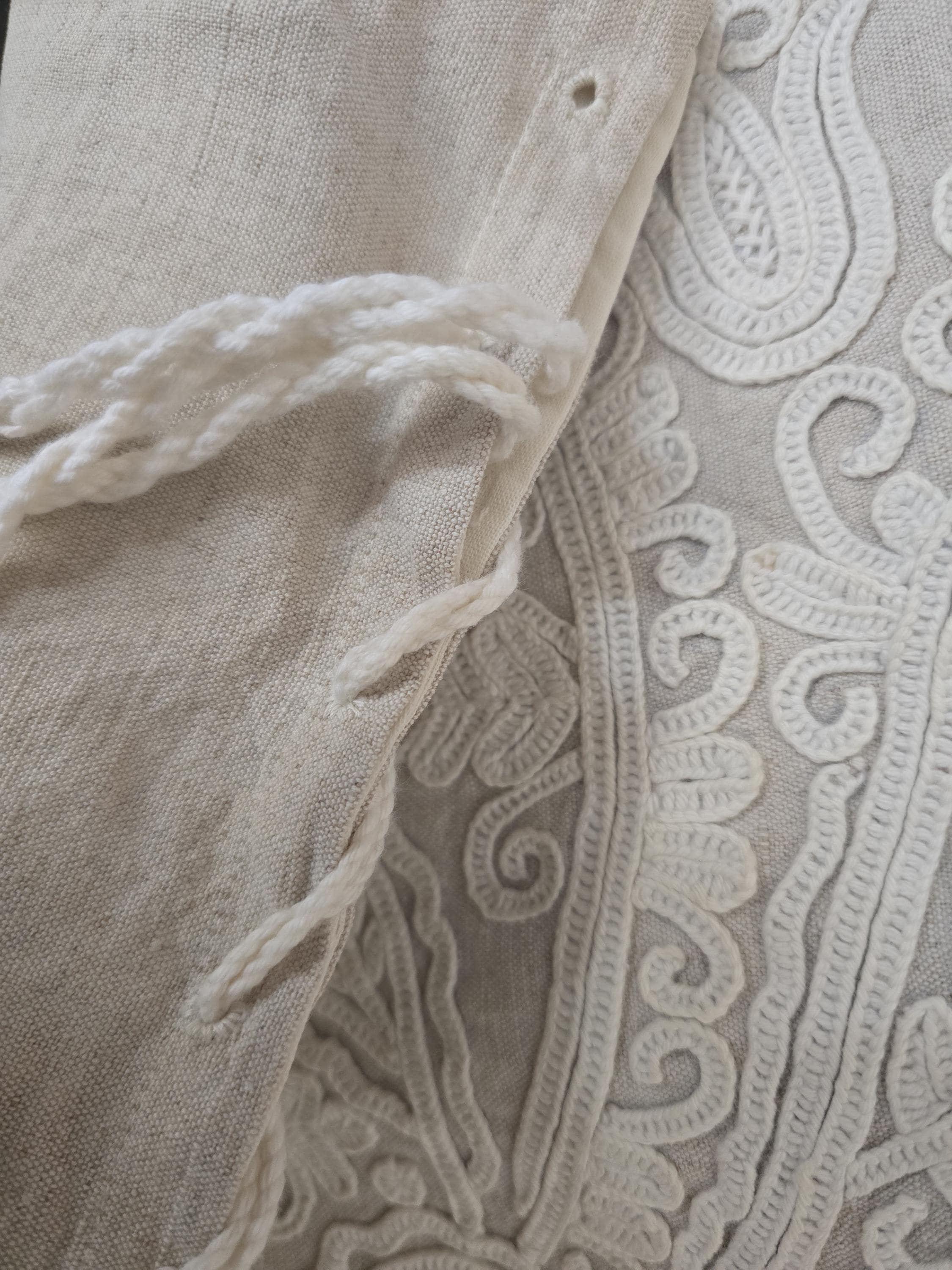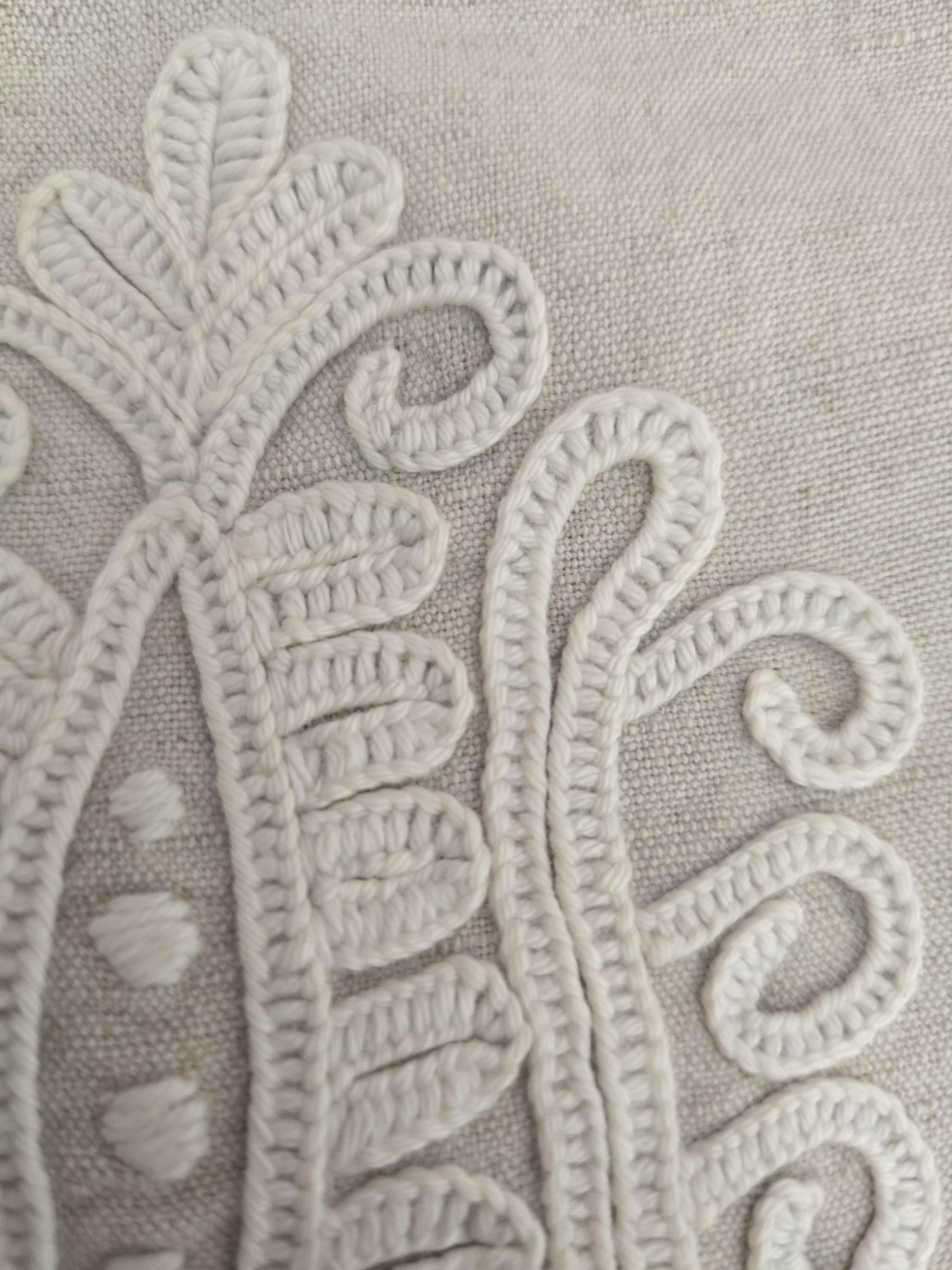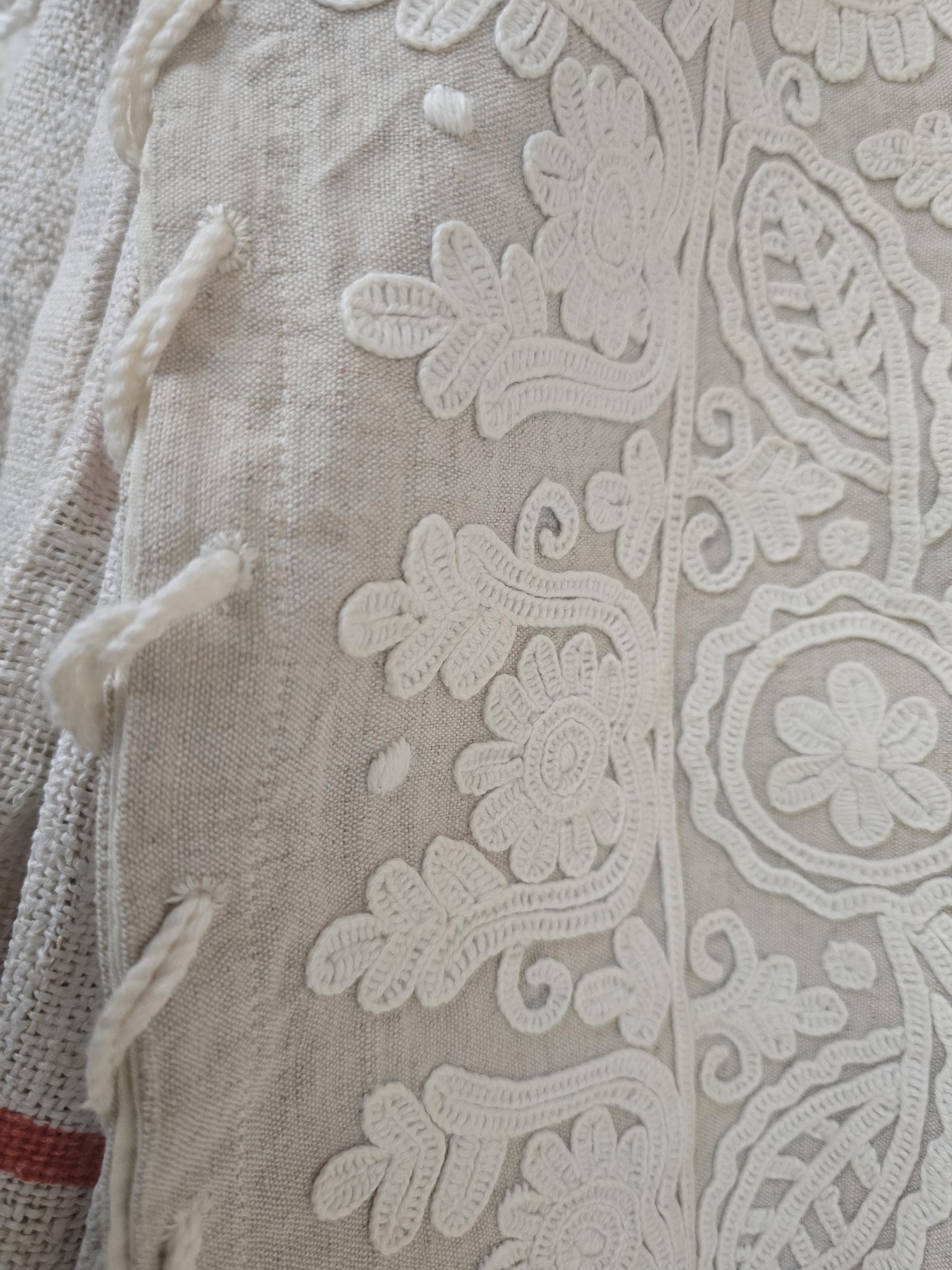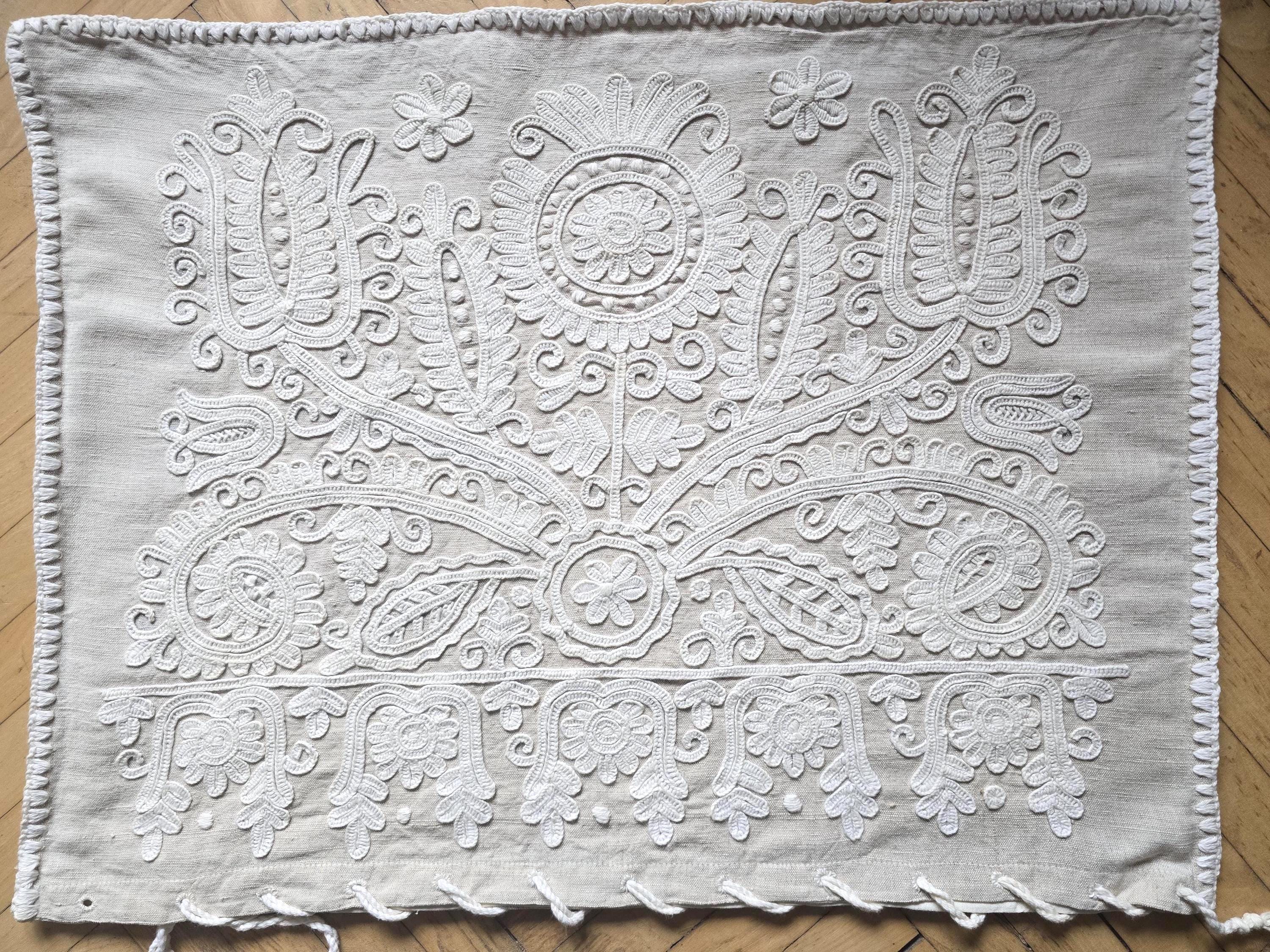 Beautifully embroidered cushion cover from the Kalotaszeg region of Transylvania. Irasos or writing stitch on a linen/ cotton mix fabric.