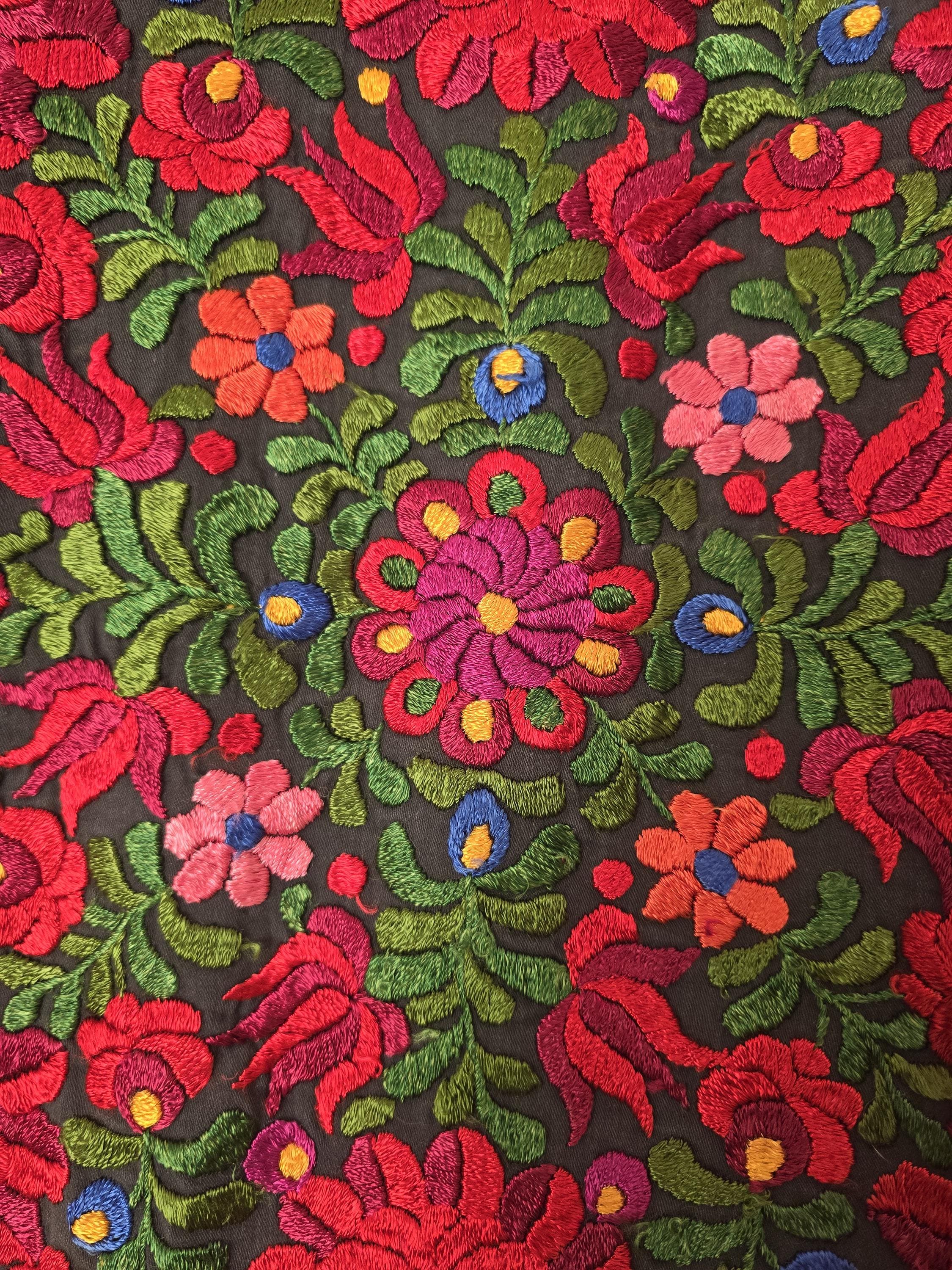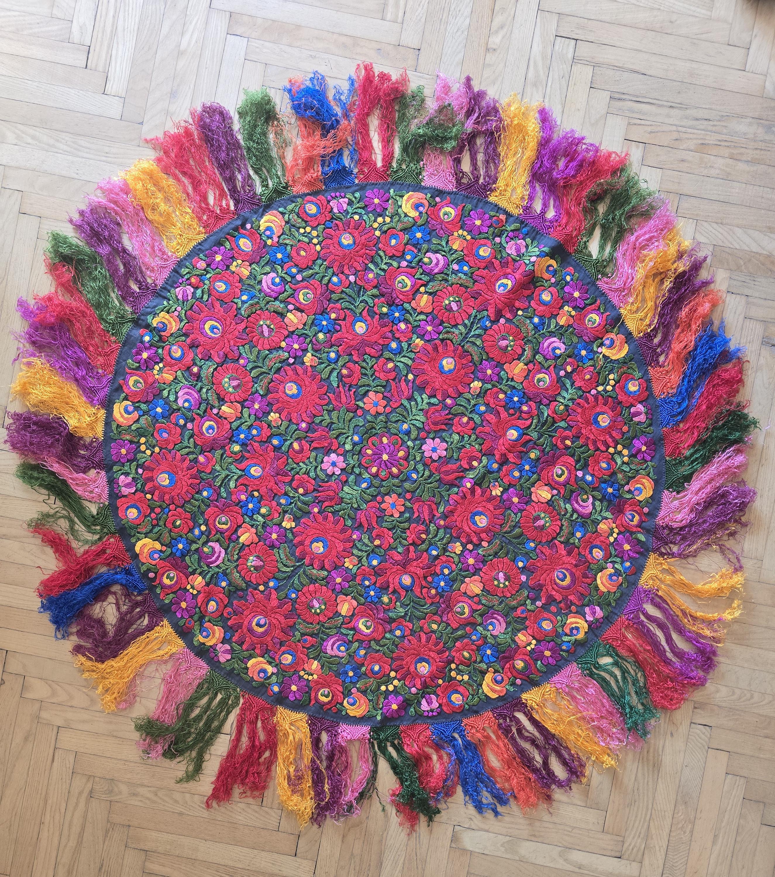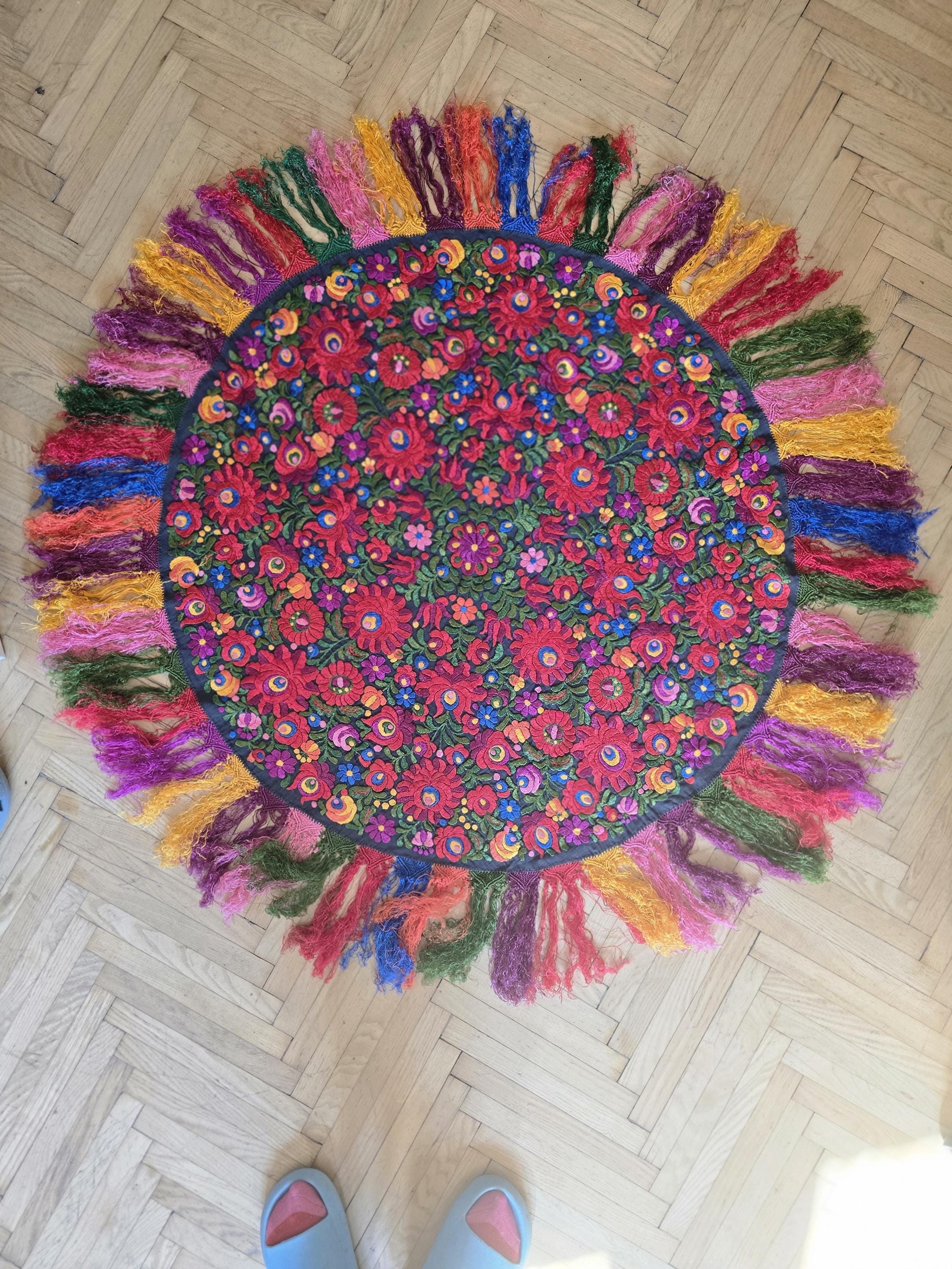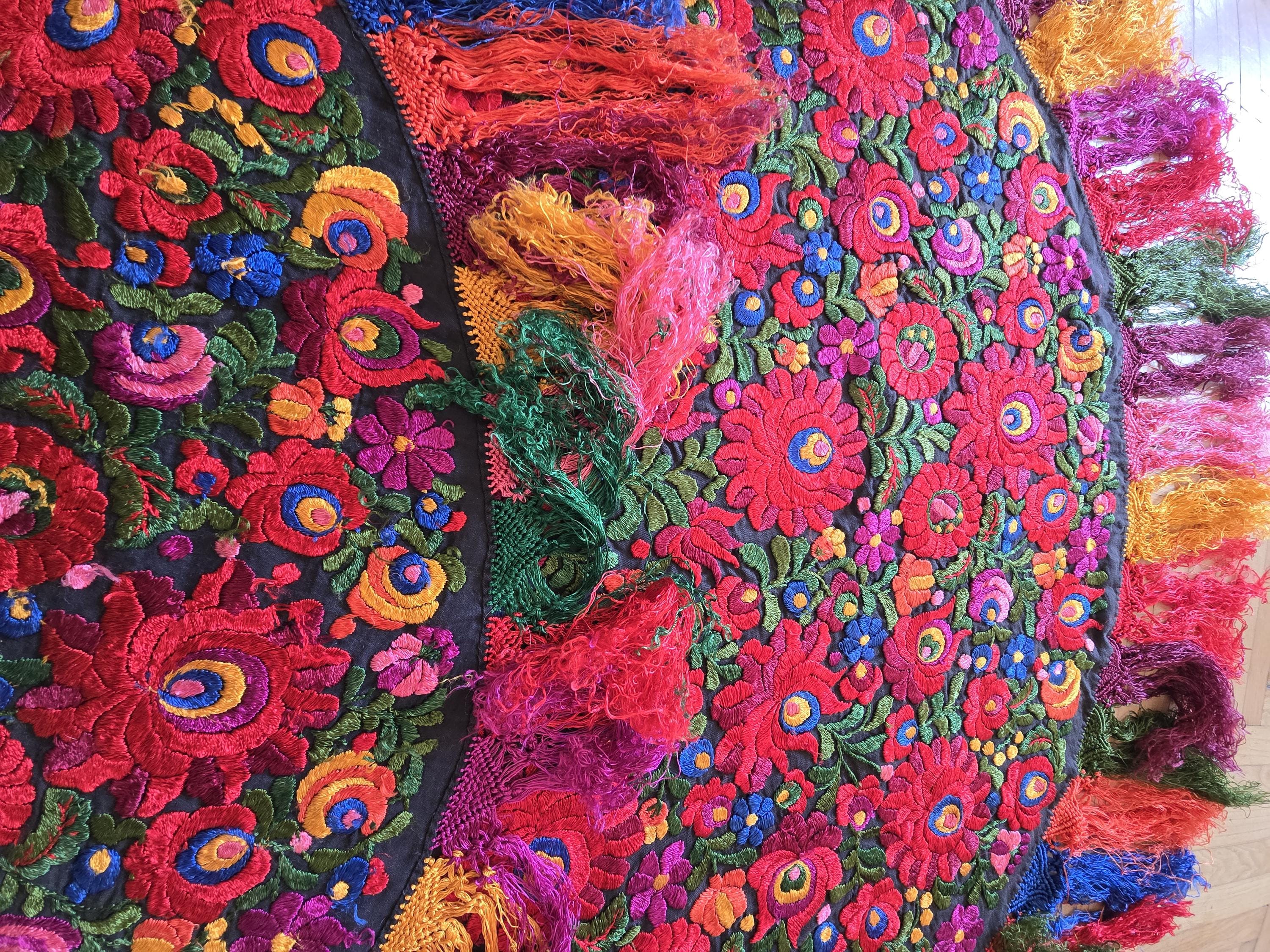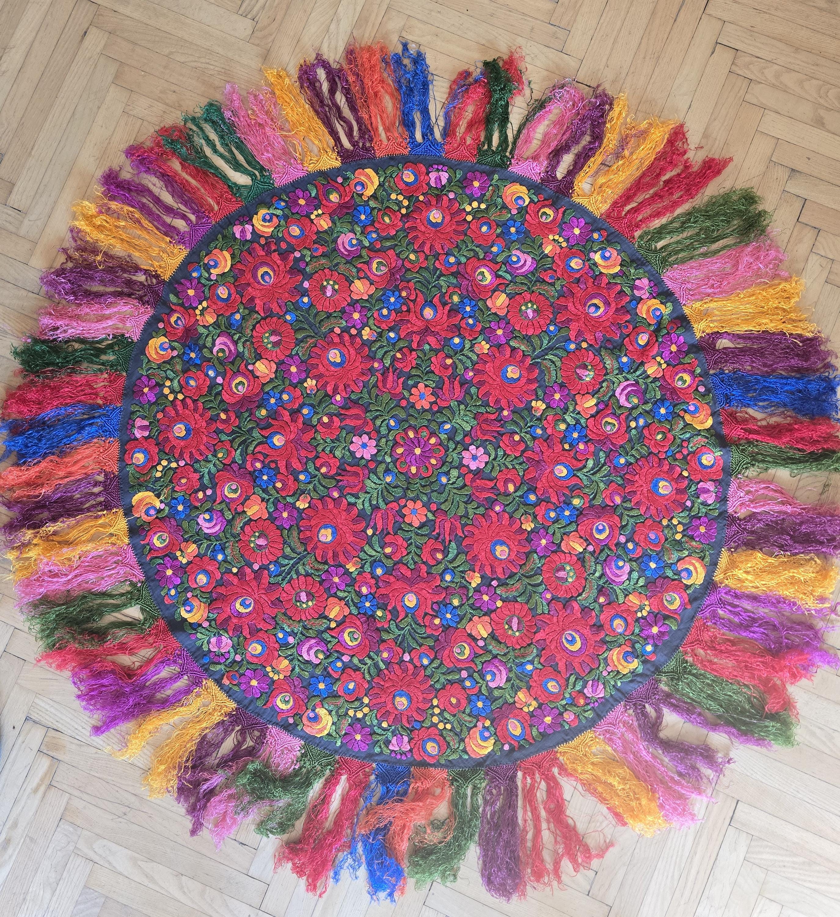 Antique Matyo embroidered tablecloth from Mezokovesd in Hungary. 1920s