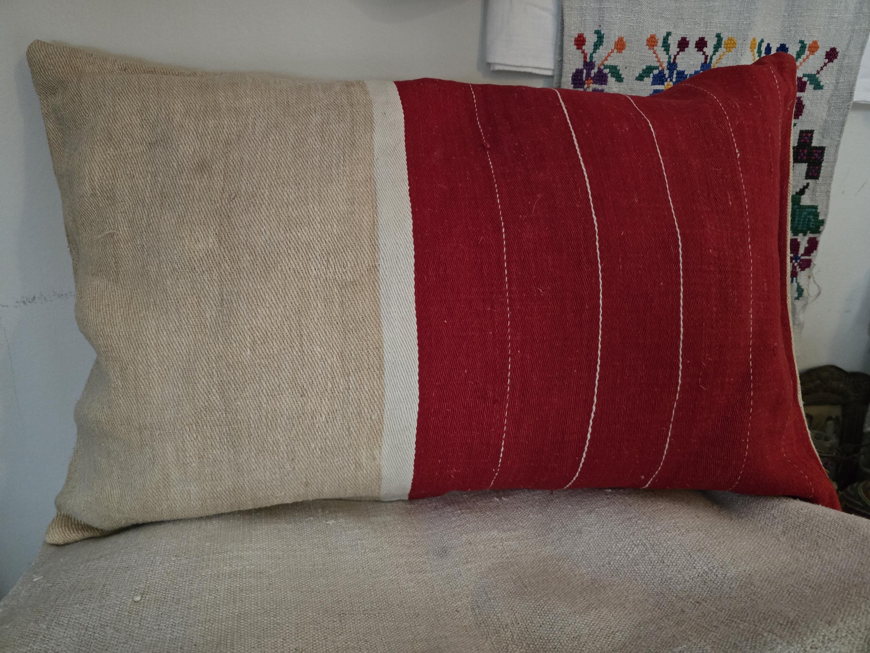 Cushion cover from vintage home woven cloth from Kalotaszeg, Transylvania