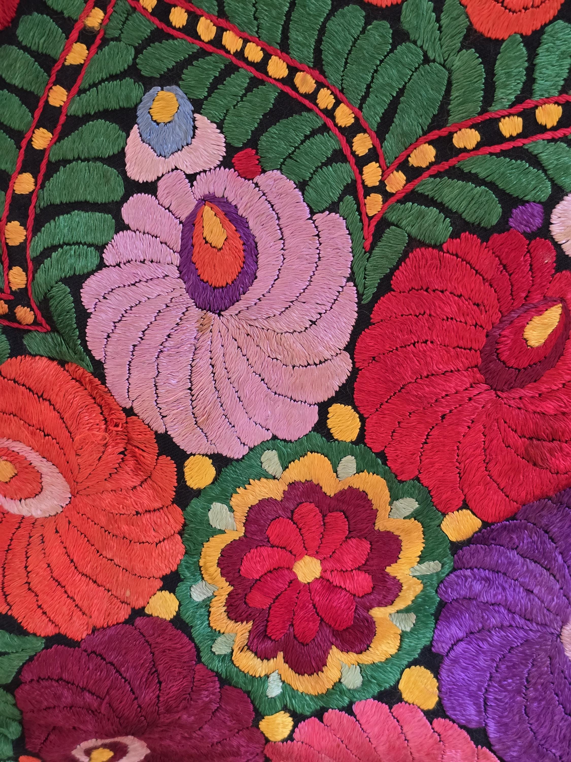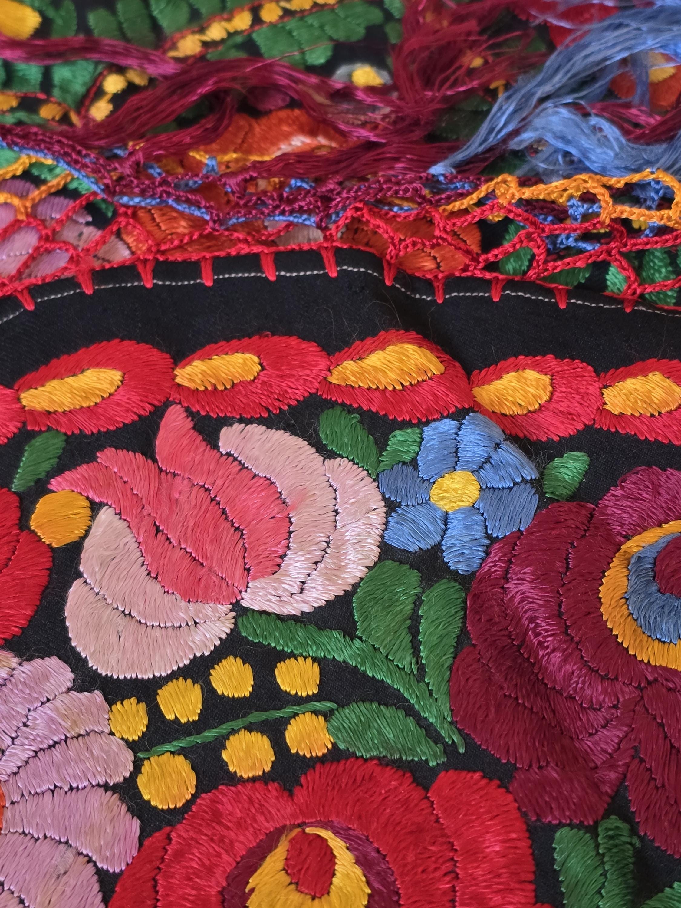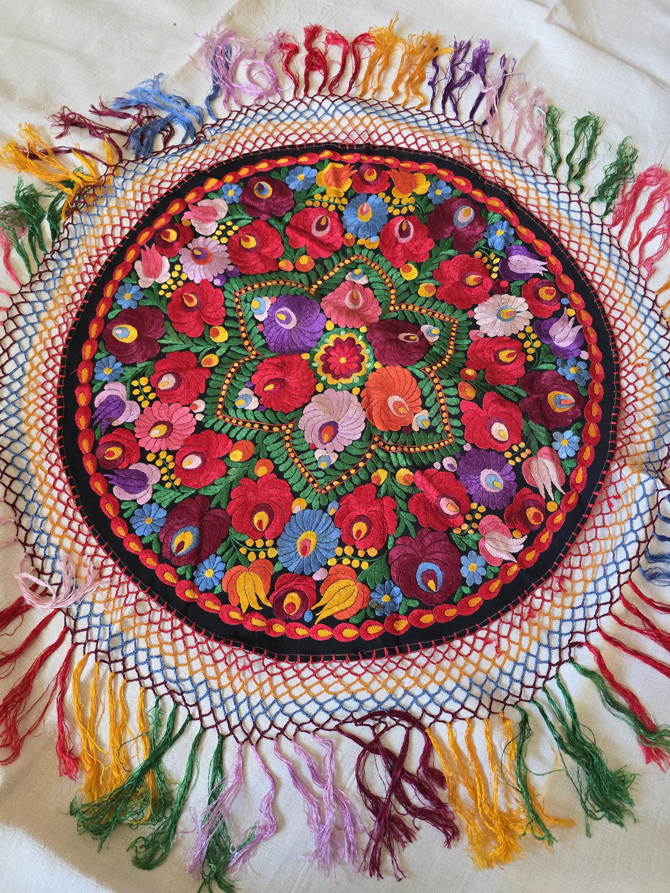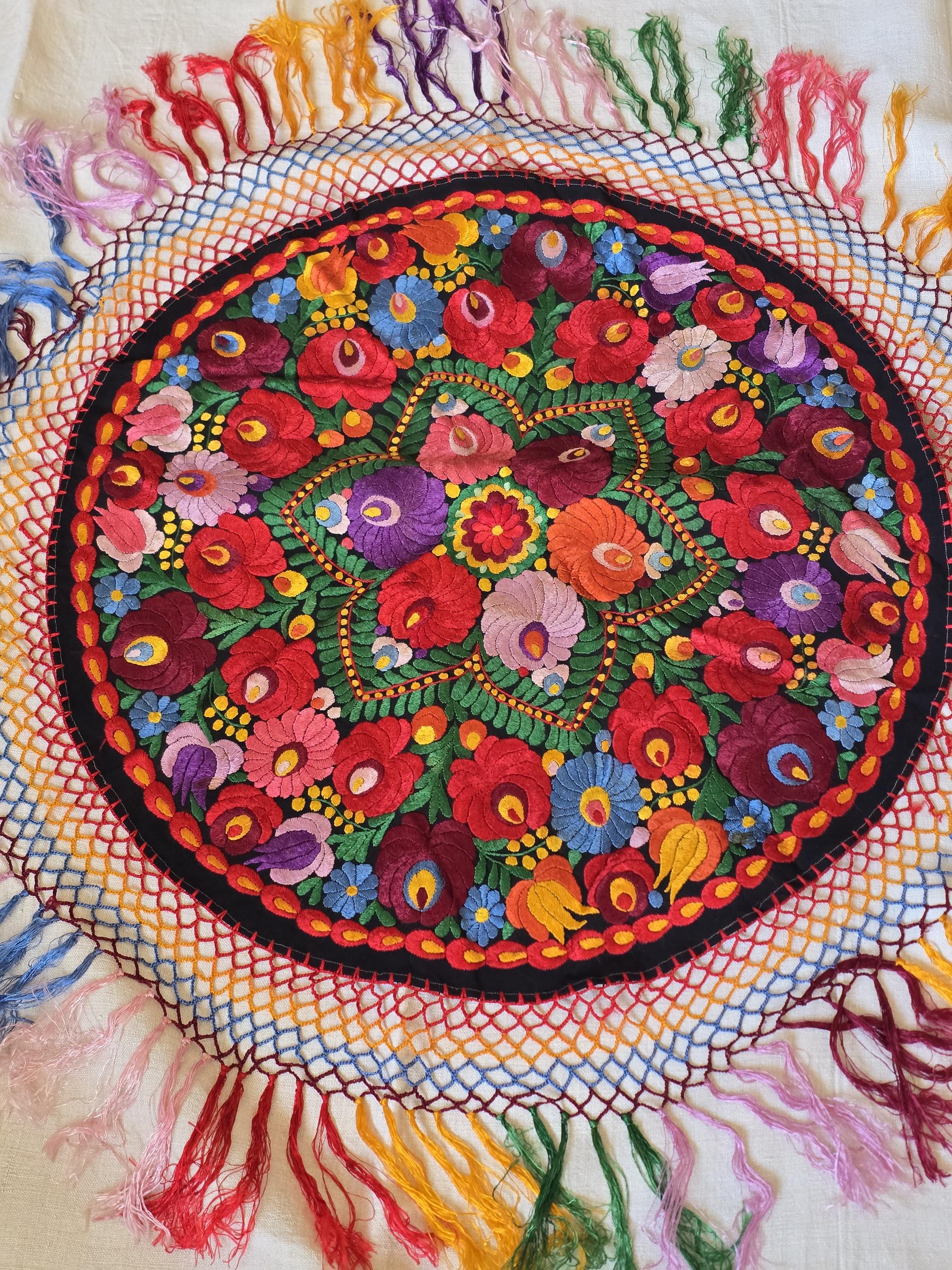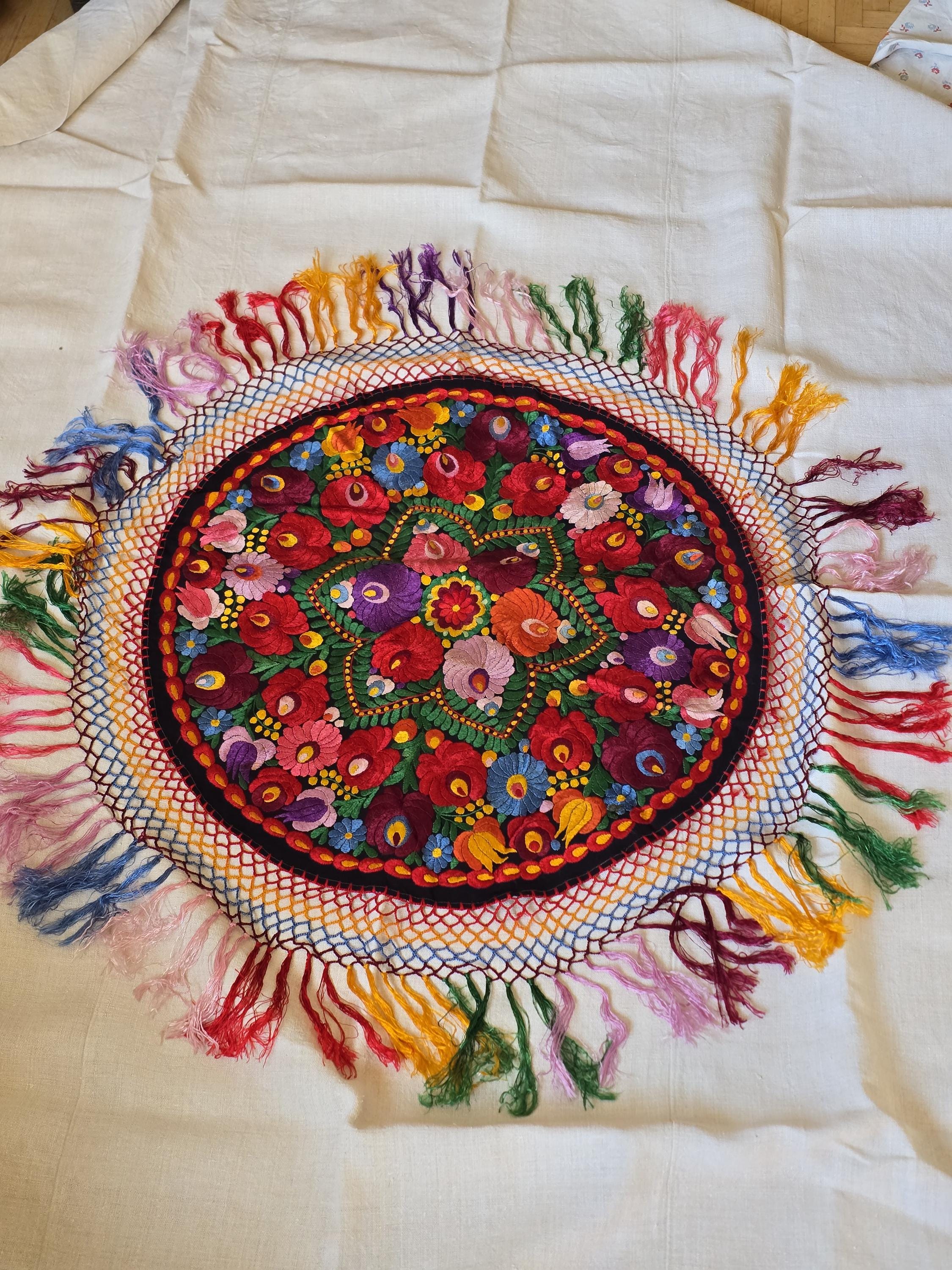 Antique Matyo embroidered tablecloth from Mezokovesd in Hungary. 1920s