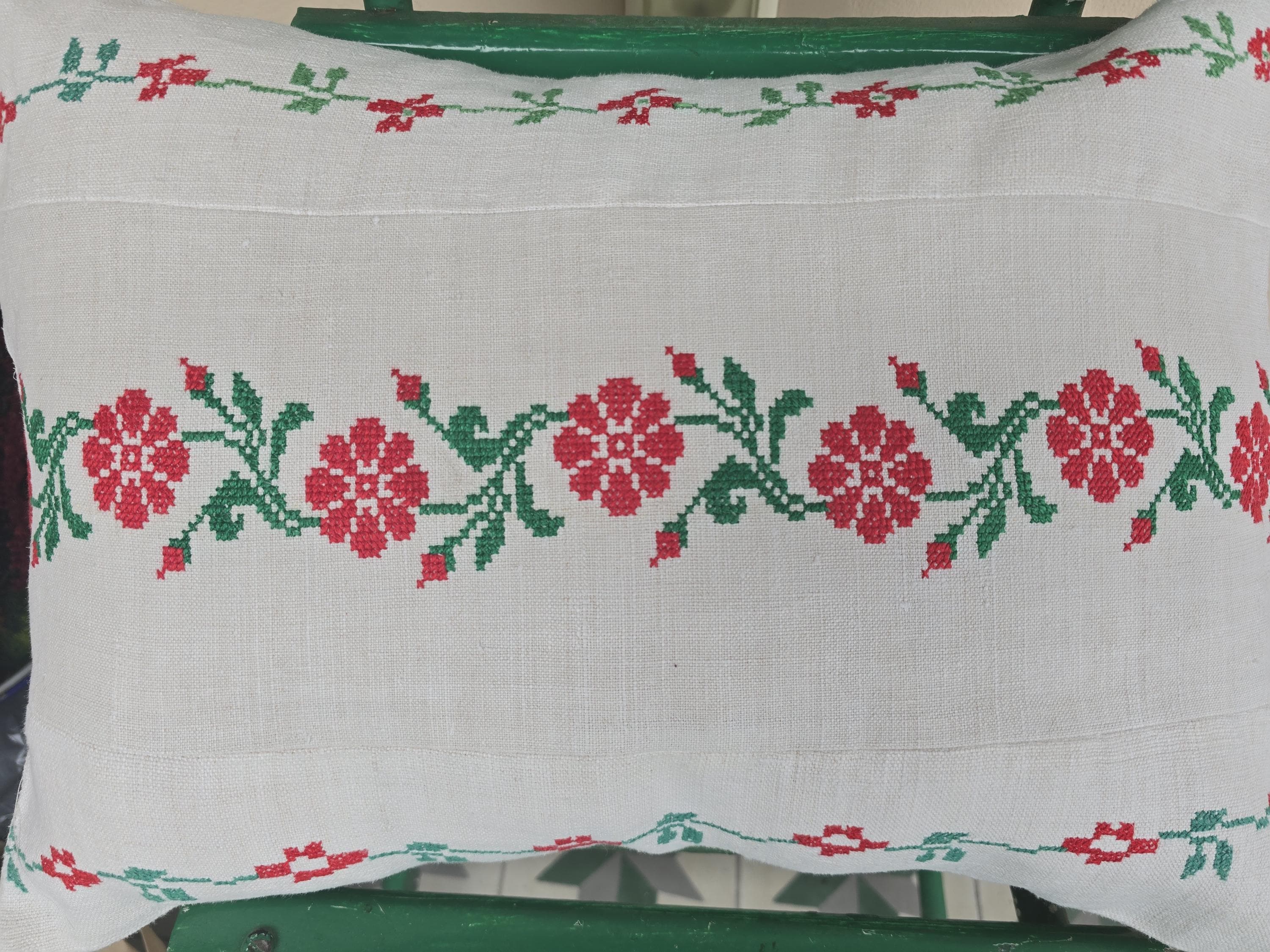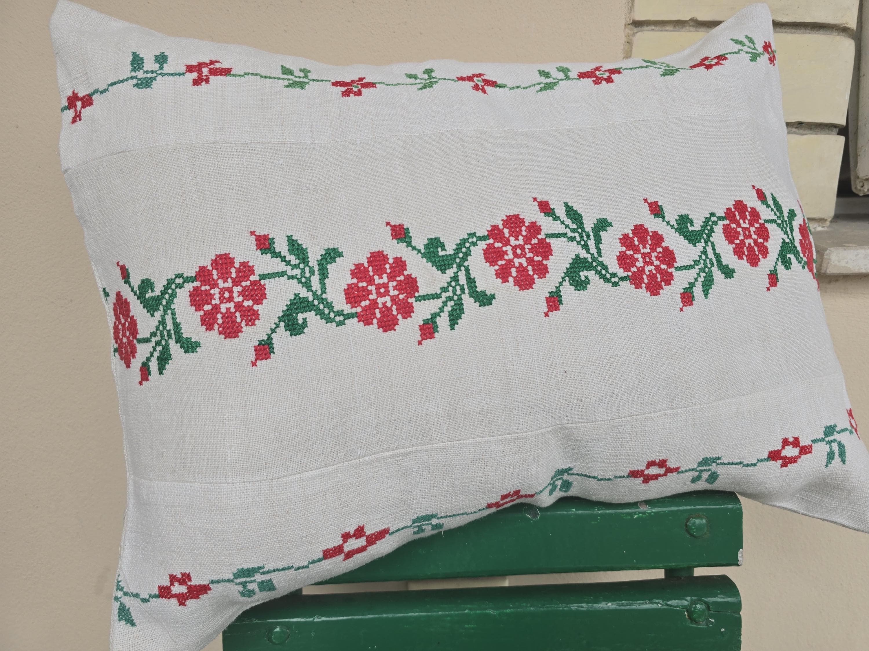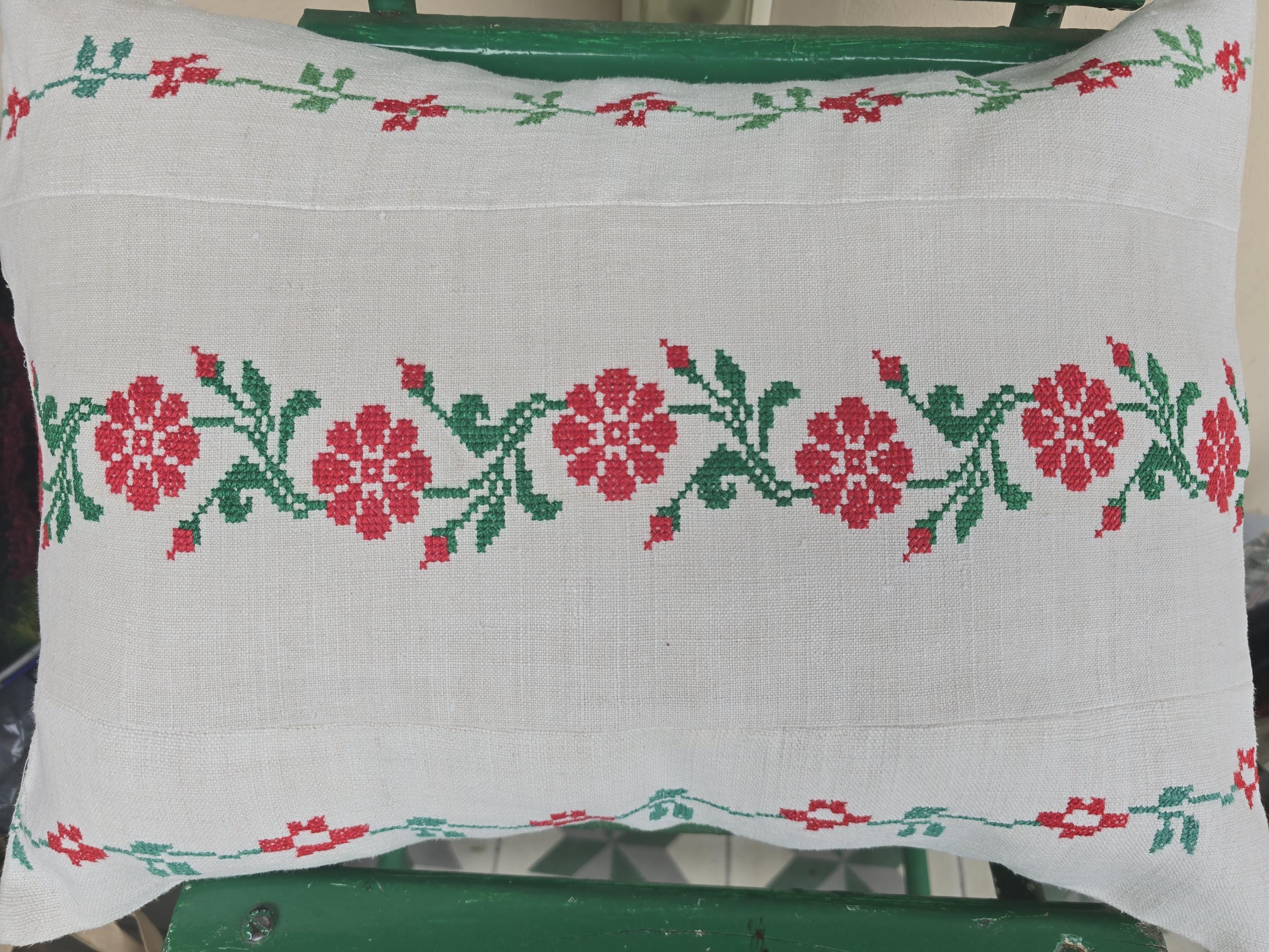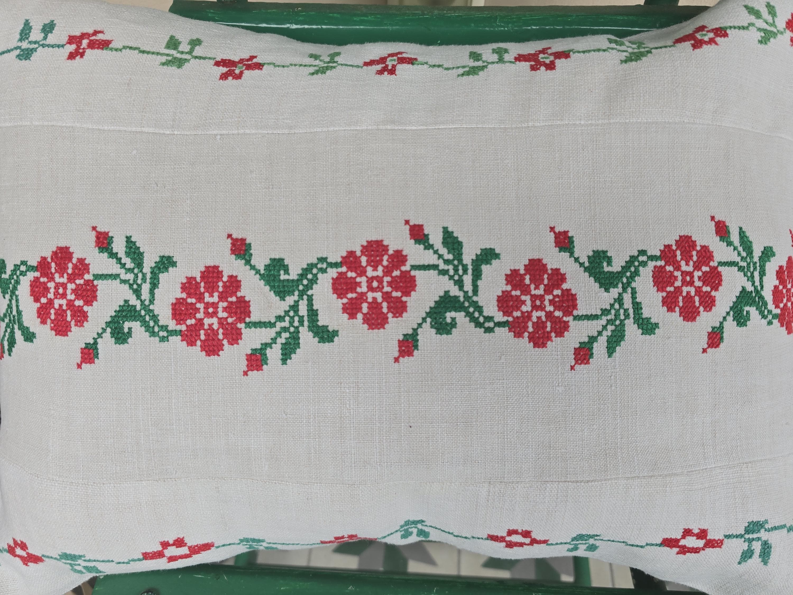 Cushion cover from pretty vintage Hungarian embroidery hand - embroidered on a home- loomed linen cloth.