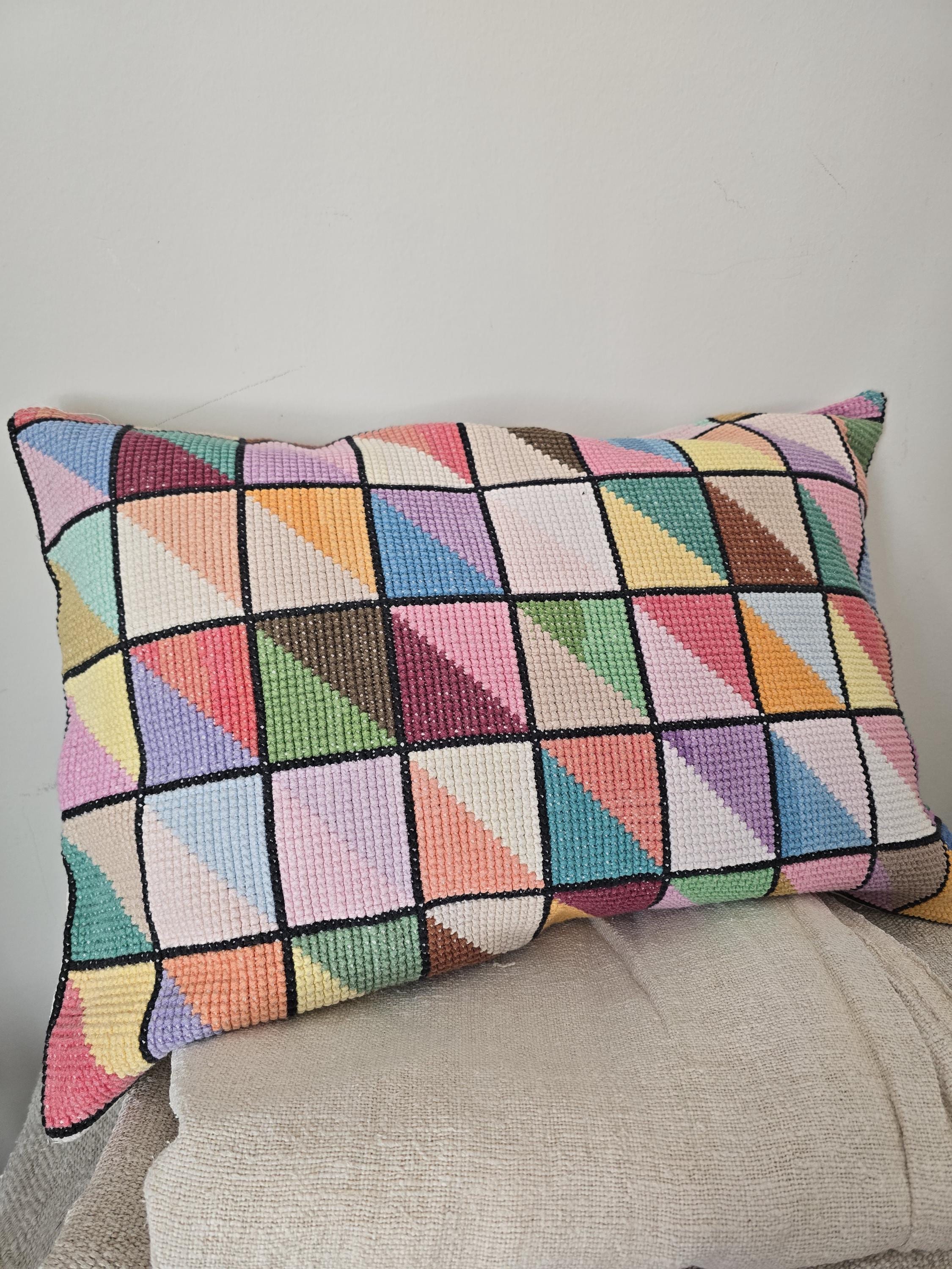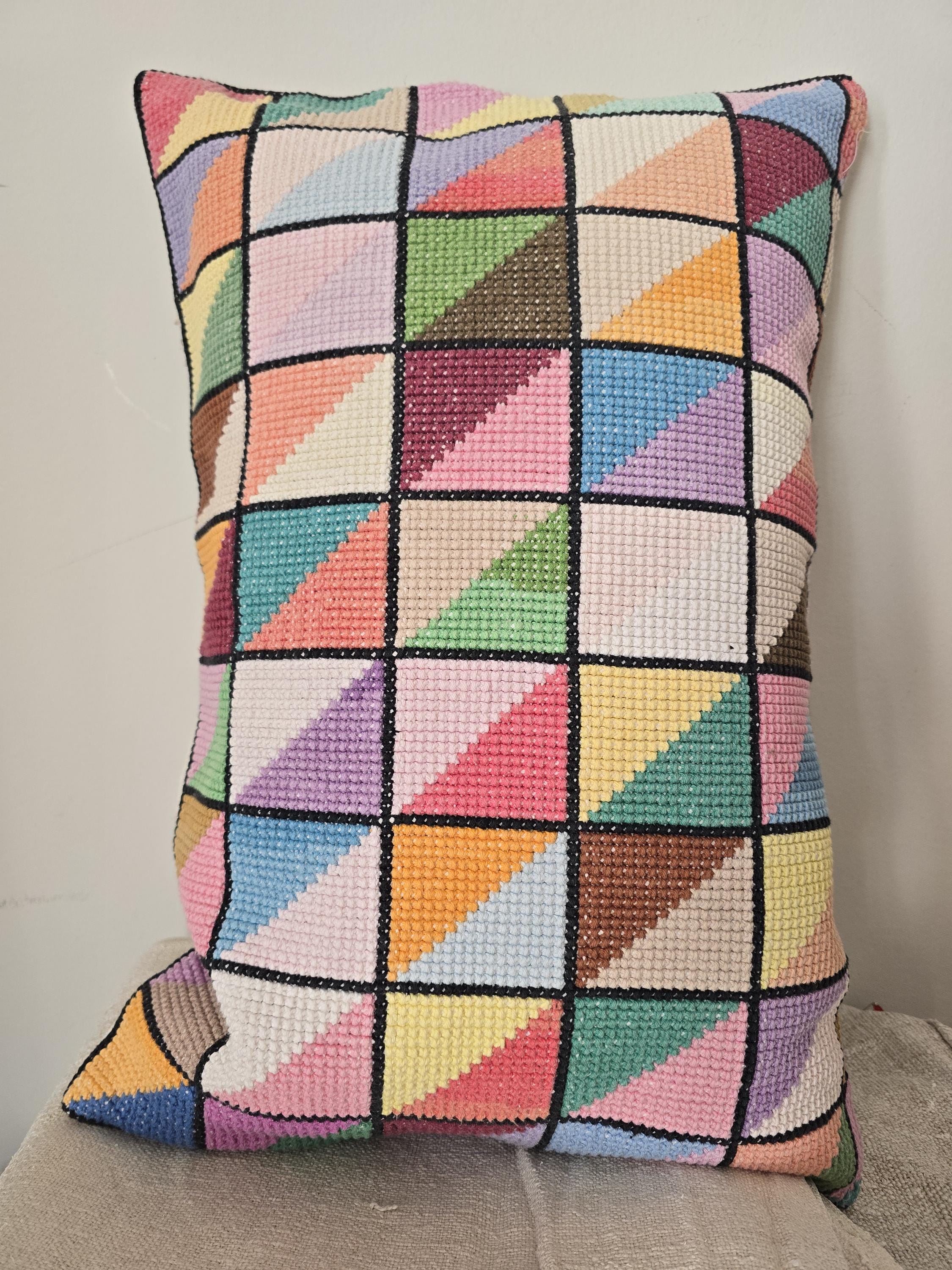 Cushion Cover from vintage embroideryThis one is 60 x 40 cmBacked with plain vintage linen, wooden button fastening.