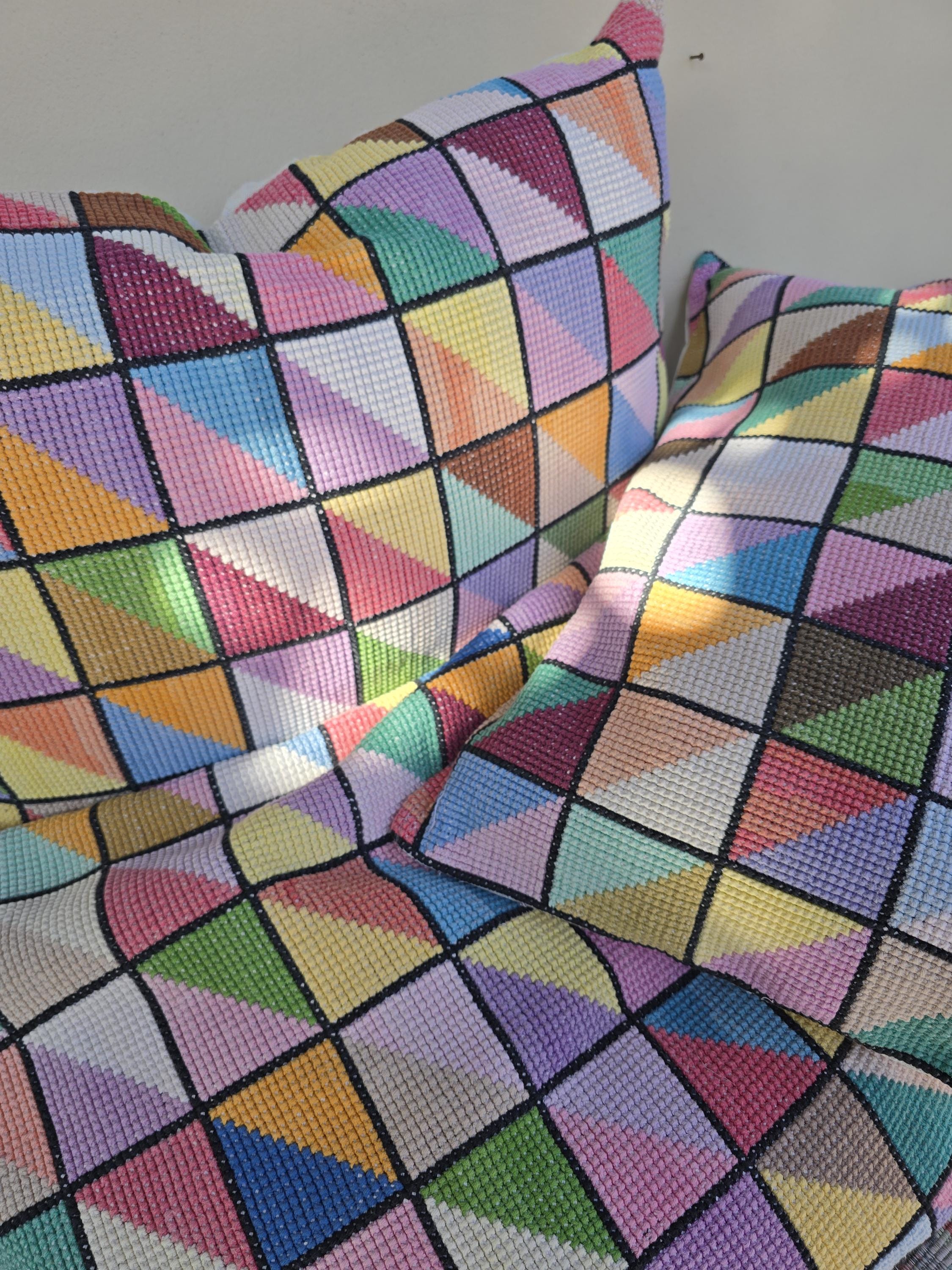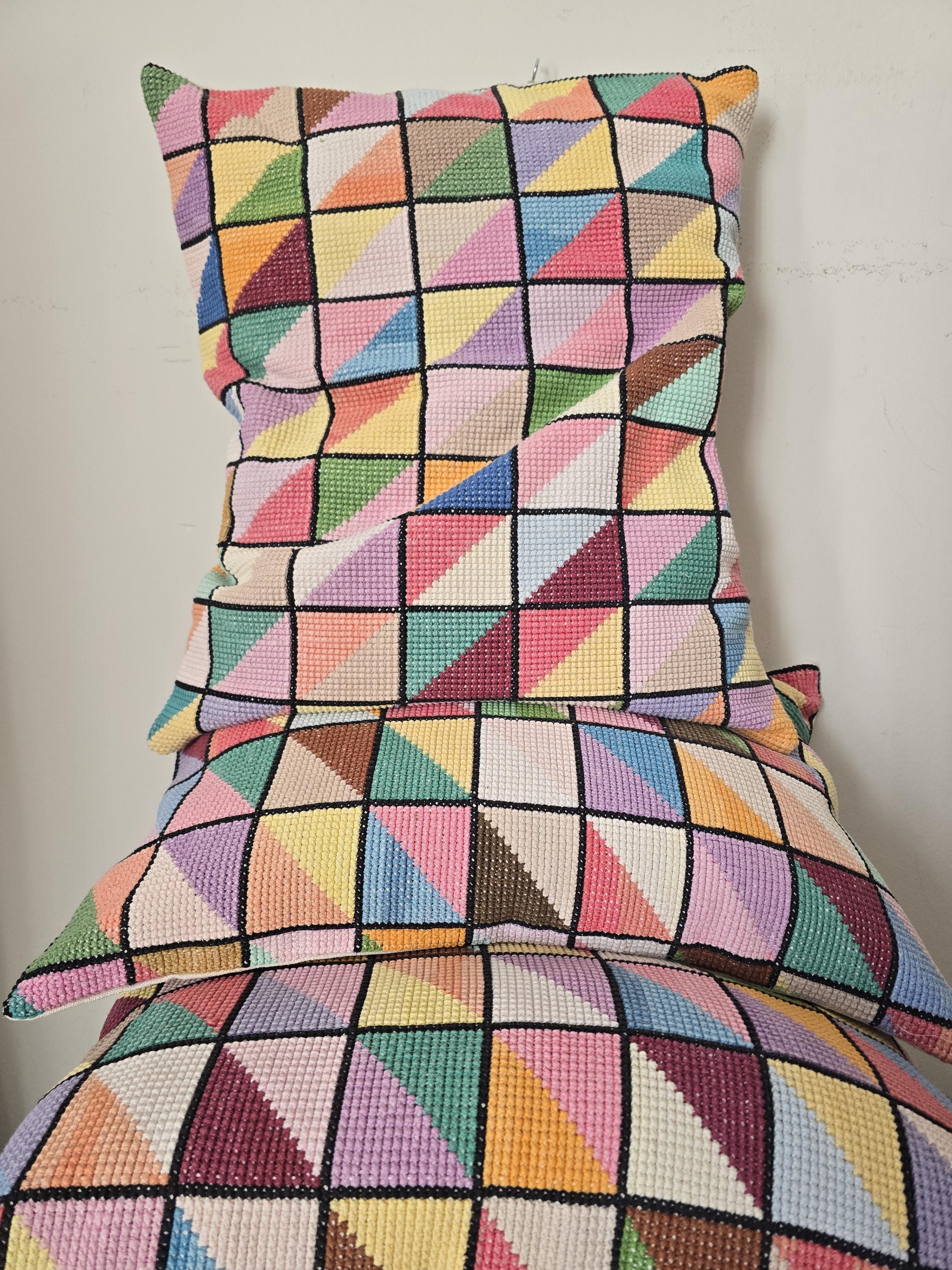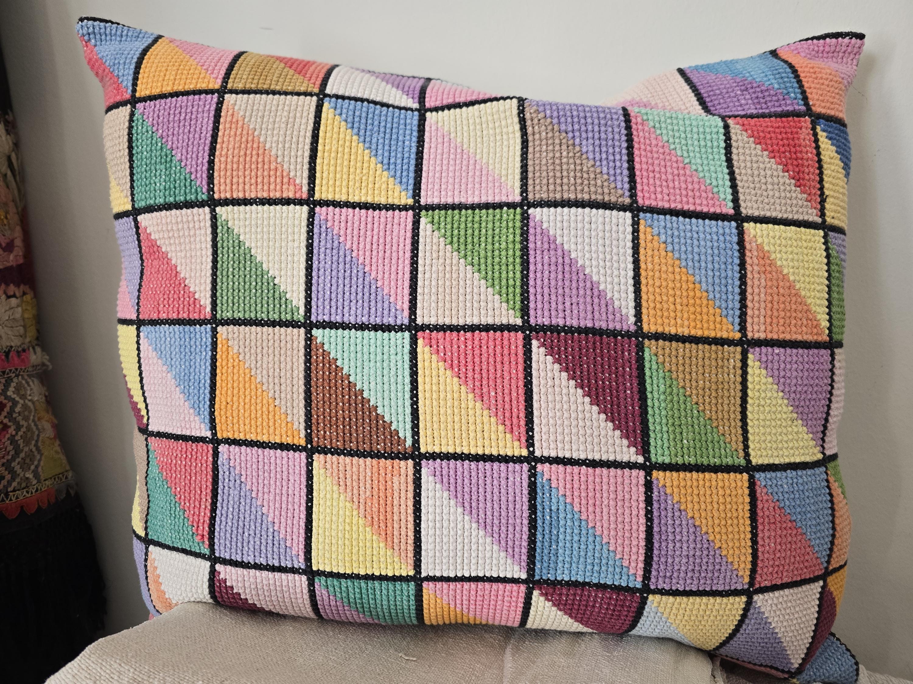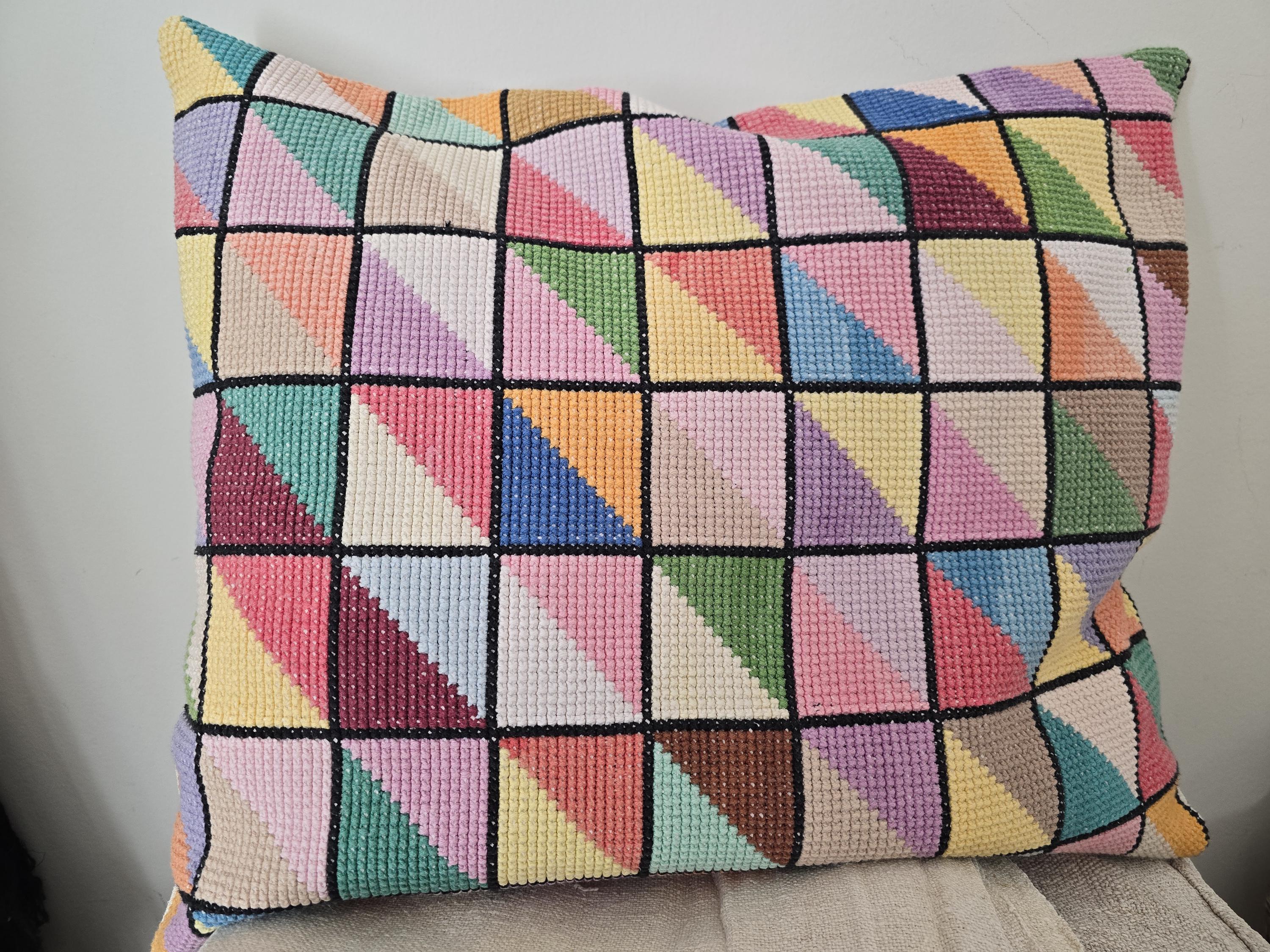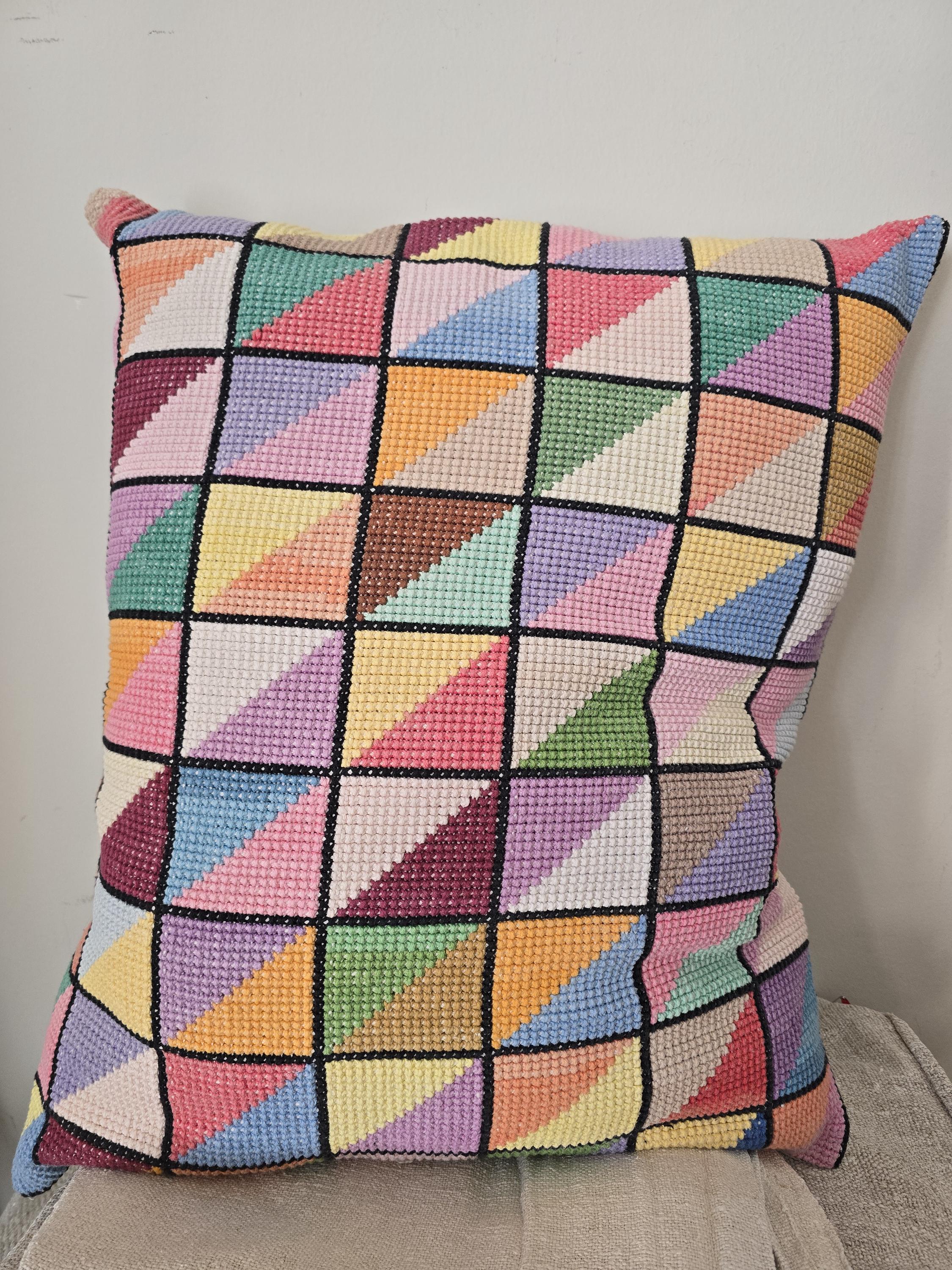 Cushion Cover from vintage embroideryThis one is 60 x 50 cmBacked with plain vintage linen, wooden button fastening.Two available. priced per piece