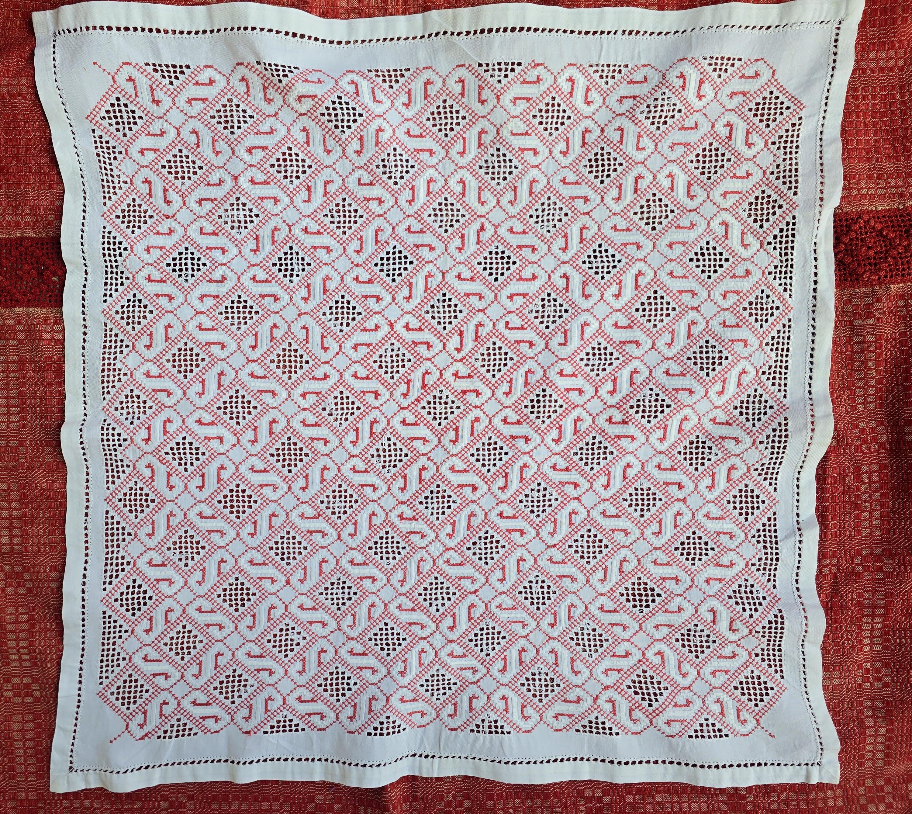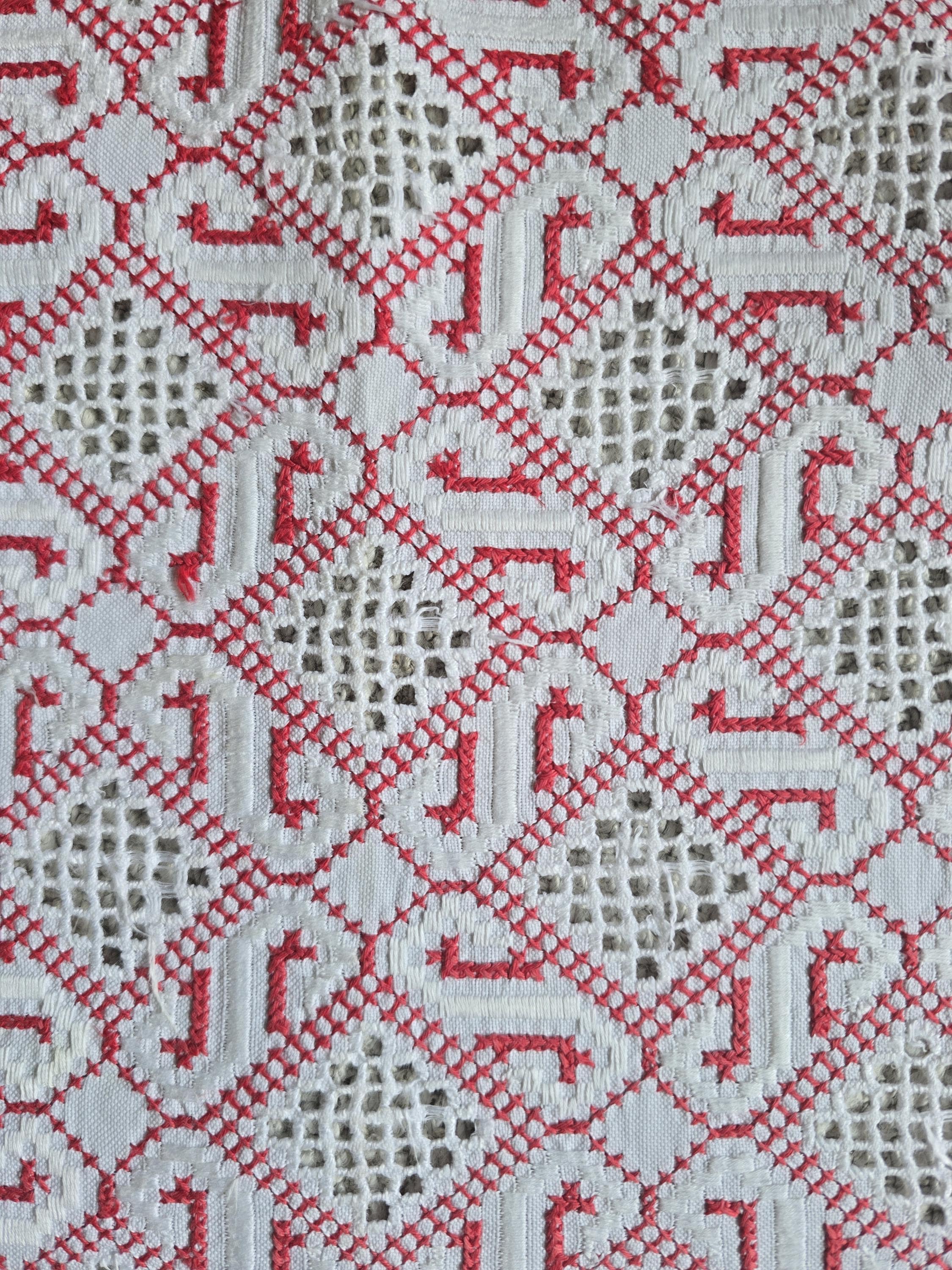 Vintage cut work similar to the Norwegian hardanger but from the Kalotaszeg area of Transylvania. This area is well known as an area of folk art and craft which has endured