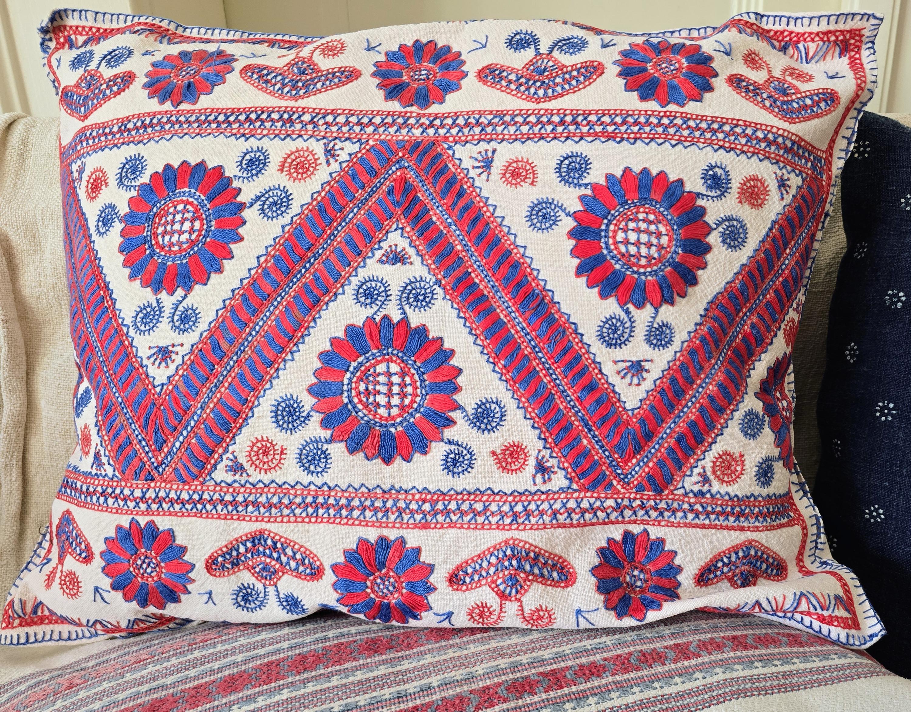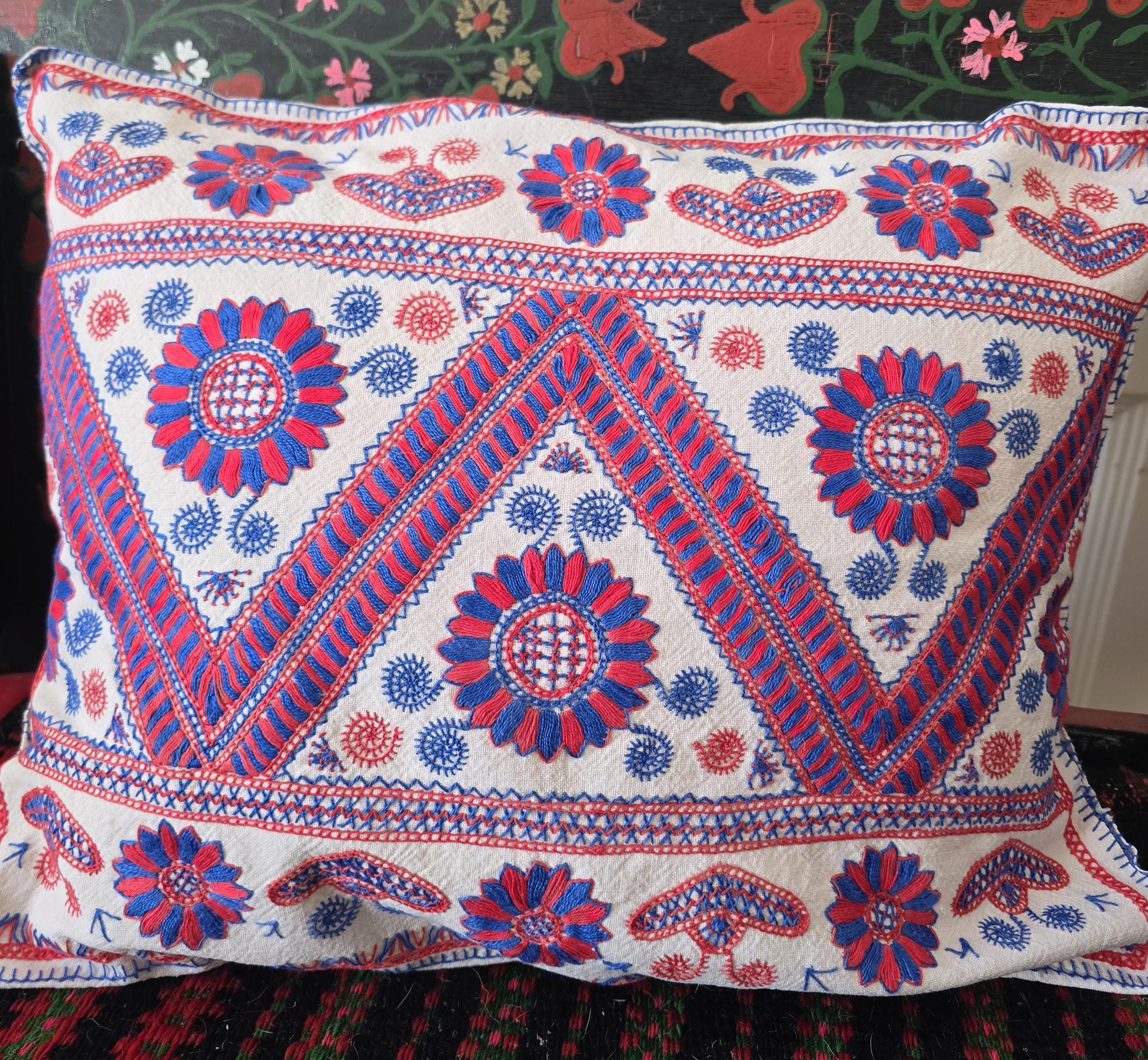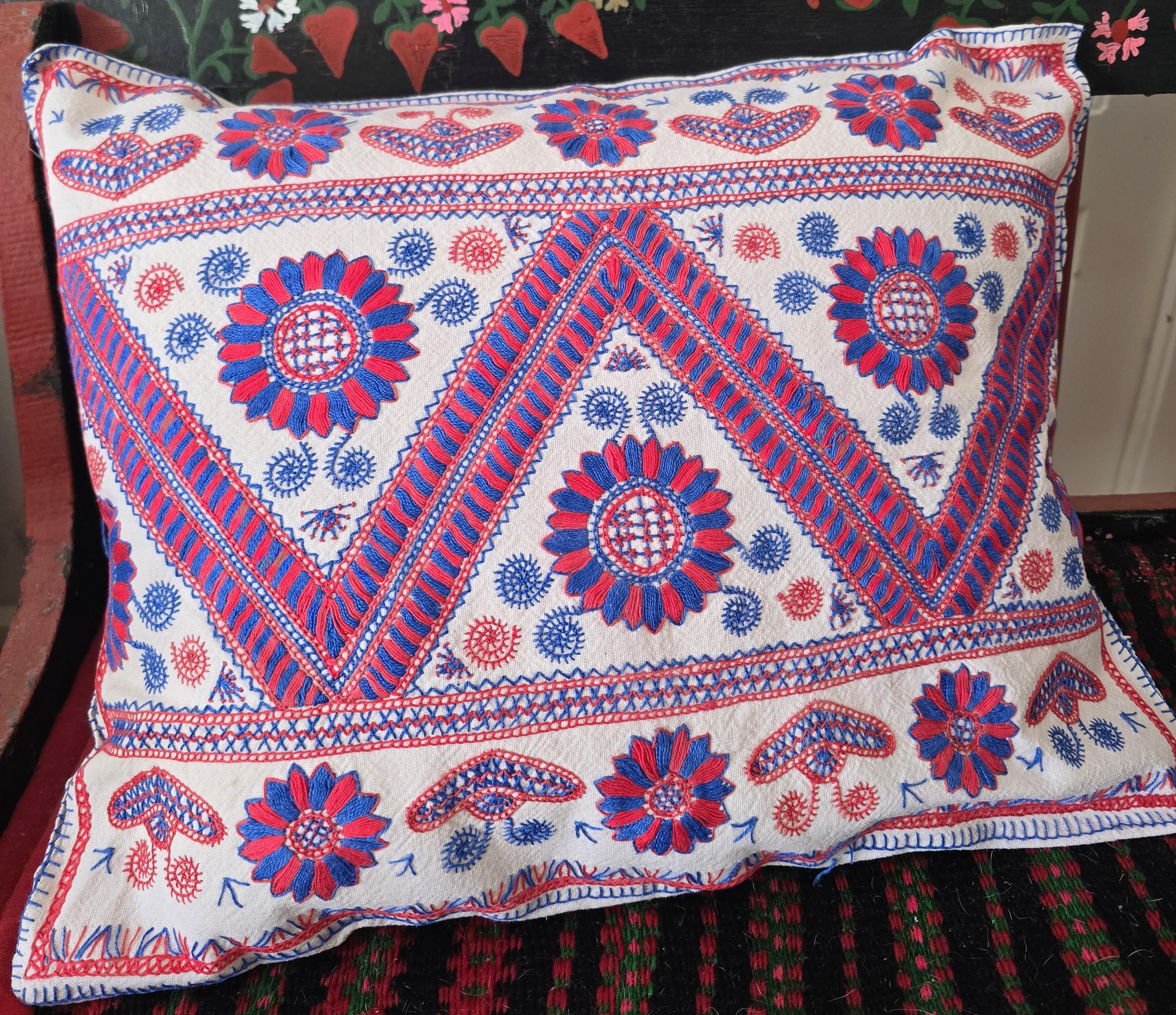 Vintage Hungarian (Buzsak) embroidery cushion cover with slit back opening